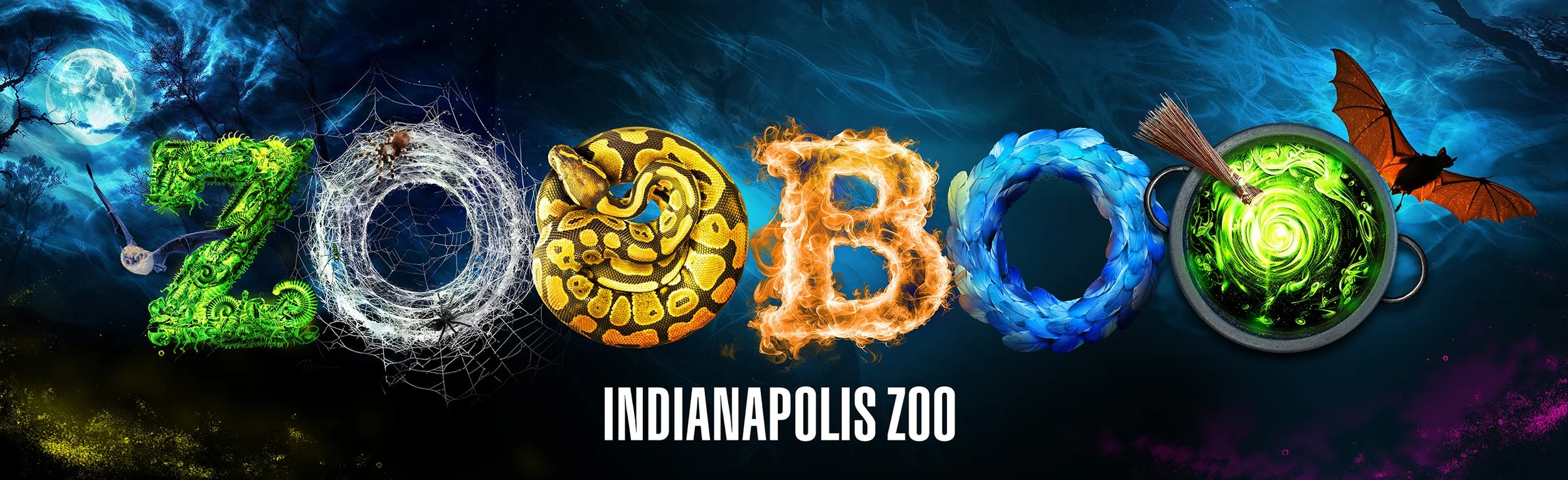 This concept centered in on EVERYTHING that goes into making ZooBoo a unique experience in a crowded market of Halloween activities. The characters the Zoo refers to as the Leeward Sisters became our central focus to “Brew up Fun” in their cauldron.